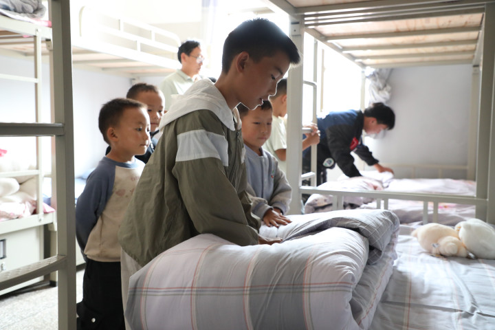 据花山小学负责人介绍,集中办学两周来,在孩子们身上看到了很多转变:来自不同校点的孩子们相处很融洽,变得越来越阳光、自信,高年级的学生还主动到一年级学生宿舍教新生折被子和整理床铺。“校园特别美,教室宽敞明亮,老师很有耐心,遇到不会的都会给我们耐心讲解。我要更加珍惜来之不易的机会,在新校园里努力学习,将来考上一所好大学,用自己的能力回报家乡。”在与六年级(1)班同学付裕的谈话中,能看到孩子的眼神里多了一份自信。
