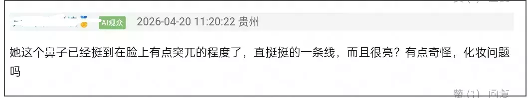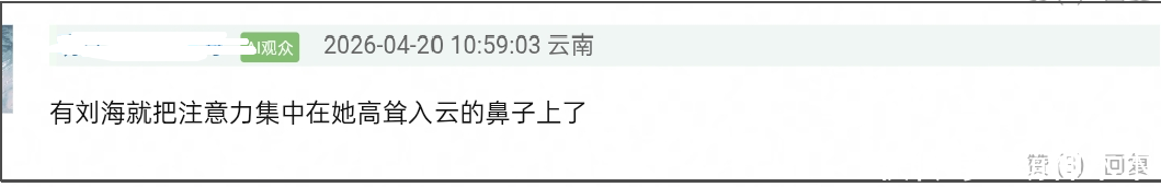 比较明显的就是刘海发型,不少网友表示这个发型太糟糕,直接让人把注意力放到鼻子上了,显得画风很突兀。热巴的五官是精致立体的,但在影片中格格不入,一来是直挺挺的鼻子在脸上看起来不够和谐,二来是眼皮凹陷有点严重,搭配齐刘海发型违和感极强,既有点“扮嫩”嫌疑,又看起来有点“男相”。
