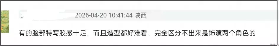 从预告片中的同框造型来看,热巴两个角色的服装及妆发基本雷同,没有明显的差异性,头发都扎了起来,服装也都是看不出经济差距。而在表演隔空对话中,两个角色的身份也没有凸显出来,演技都很呆愣,脸上写满空洞,自己与自己的对手戏没有演绎好。