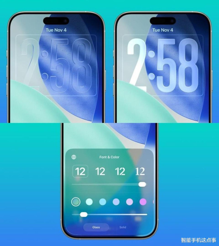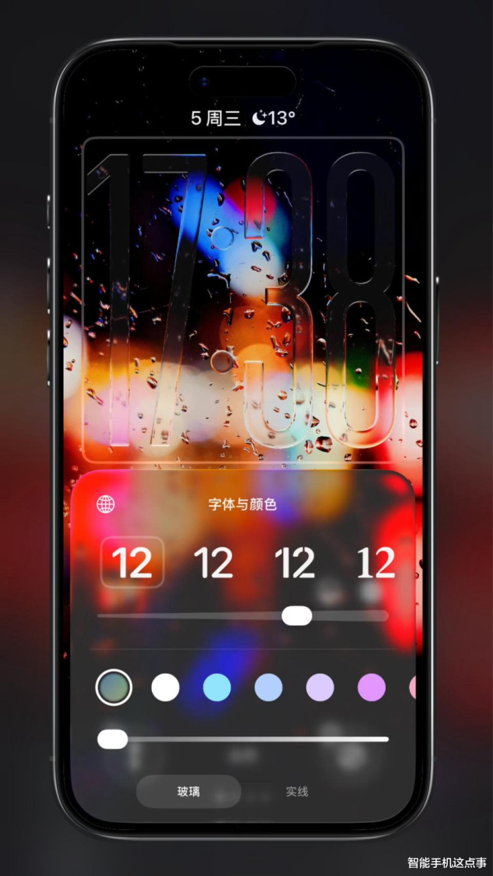 比如锁屏液态玻璃终于能自定义了,在“设置—显示与亮度—Liquid Glass”中,新增了一个透明度滑块,用户现在可以自由调节液态玻璃的模糊程度。