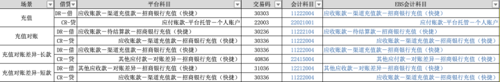 下面是一个典型的支付系统会计科目的部分截图示例。