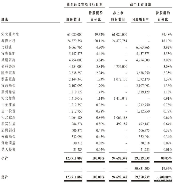 IPO后,宋文兰持股为39.48%,海伟财务持股为16.1%,比亚迪持股为3.92%,宜昌绿能持股为3.53%,昌瑞谘询、嘉科谘询分别持股为3.08%,阳光电源持股为2.35%,泰富汇鑫持股为1.39%,宜昌基金持股为1.36%;