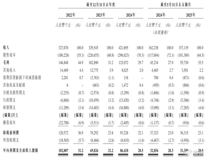 招股书显示,海伟电子2022年、2023年、2024年营收分别为3.27亿元、3.3亿元、4.22亿元;期内利润分别为1亿元、6983万元、8642万元;期内利润率分别为31.2%、21.2%、20.5%。